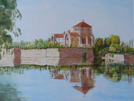 4. Tatai vár festése: az égbolt és a víz megfestése.