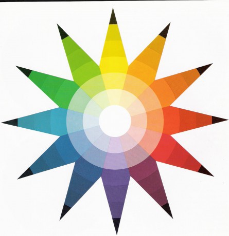 A színkör színeinek világossági értékei változnak a fehértől a feketéig. Gömb formában kell elképzelni.