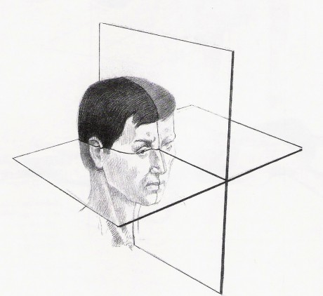A horizontális sík az orrnyeregnél metszi a fejet.