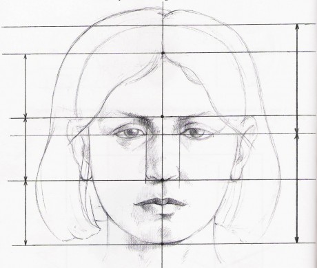 Felső, középső és alsó arcrégiót különböztethetünk meg. Az orrszélesség azonos a két belső szemzug közötti távolsággal. A két szem közötti távolság azonos egy szem szélességével. A fül azonos az orrhosszal.A szájzug a pupillákkal van egy síkban.